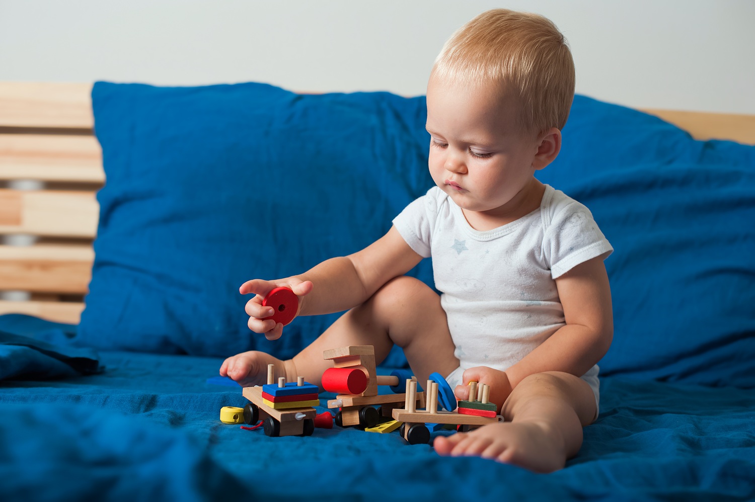 Vom 1-2 Lebensjahr dominiert das sensumotorische Spiel. Diese Vorform des kindlichen Spiels äußert sich im Experimentieren mit dem eigenen Körper. Das Kind bewegt Arme und Beine, dessen Bewegungen anfangs noch ziellos sind, jedoch mit jedem Tag mehr und mehr zielgerichtet werden. Später werden verschiedene Gegenstände einbezogen, mit denen das Kind in vielfältiger Weise hantiert.