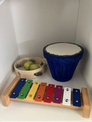 Gemeinsames Singen, Bewegungslieder und das Ausprobieren verschiedener Instrumente gehören deshalb regelmäßig zu unserem Alltag. Die musikalischen Aktivitäten fördern auf spielerische Weise die Sprachentwicklung, die Motorik und das soziale Miteinander. Durch wiederkehrende Lieder, Fingerspiele und kleine Rhythmusübungen gewinnen die Kinder Sicherheit, Freude am Ausprobieren und ein erstes Gefühl für Musik.